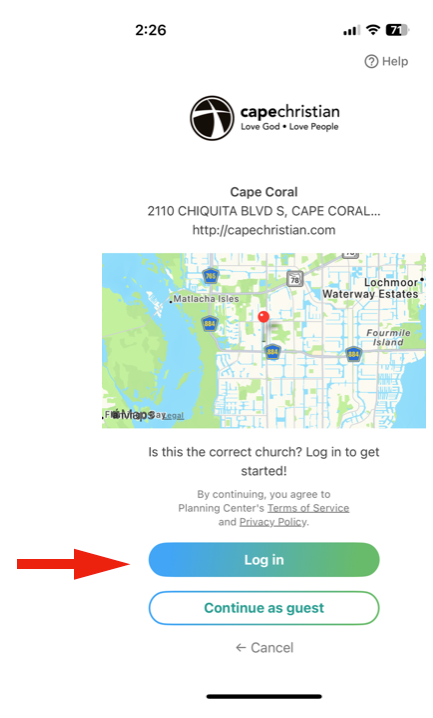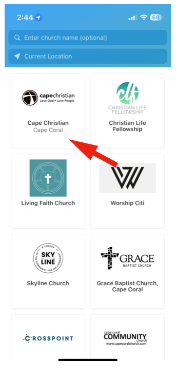 Once dowloaded, open up the App and select Cape Christian from the church options listed.