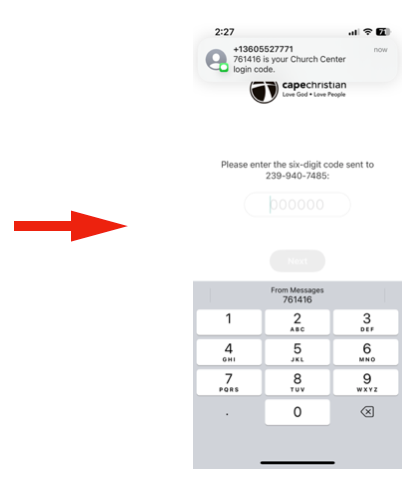 Follow the prompts to enter either your phone number OR email. This will allow the App to try to find your account in our church databases.